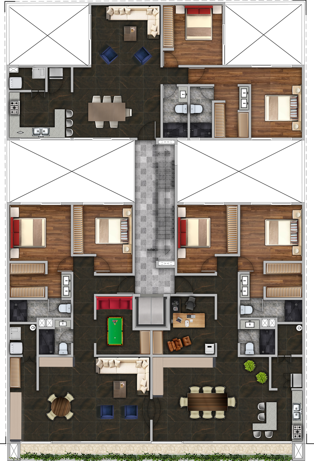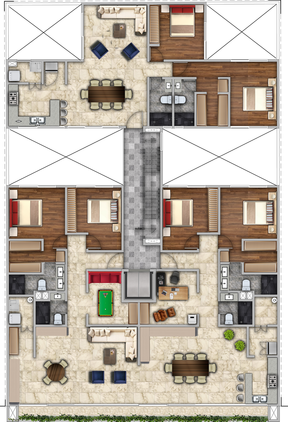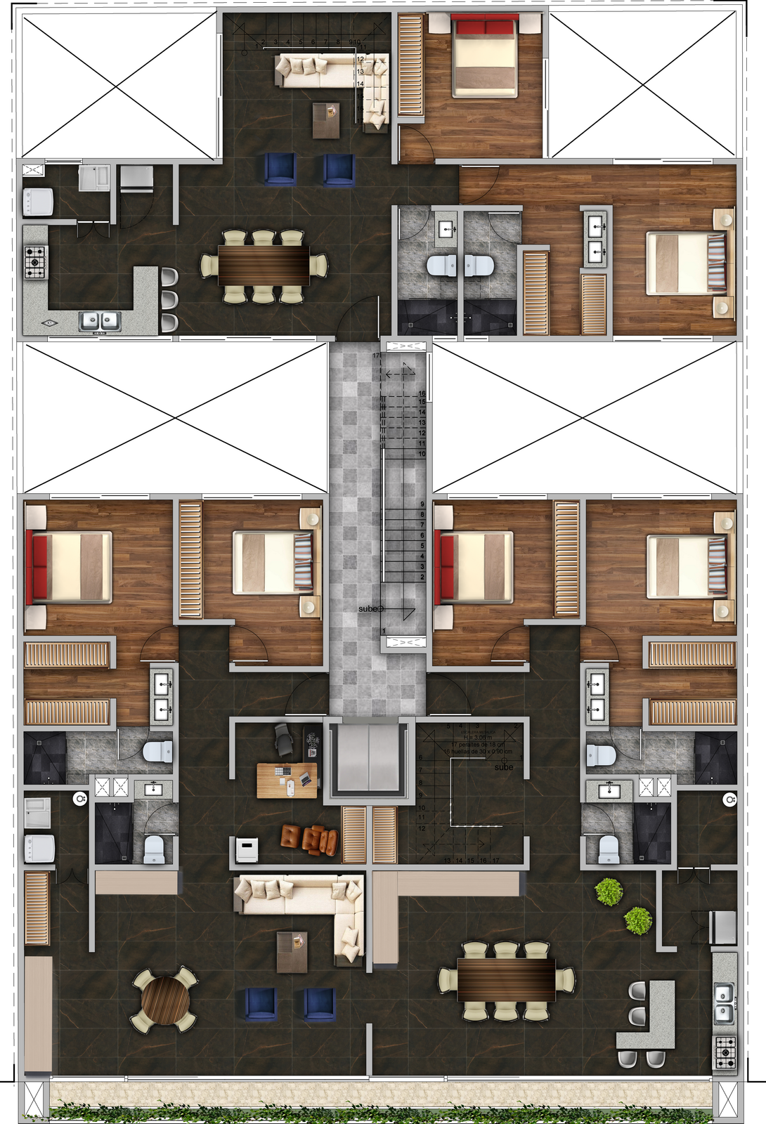 Las imágenes, renders, planos, acabados, mobiliario y elementos decorativos mostrados son únicamente ilustrativos y pueden presentar variaciones respecto al producto final y deberán de Servir unicamente como referencia »