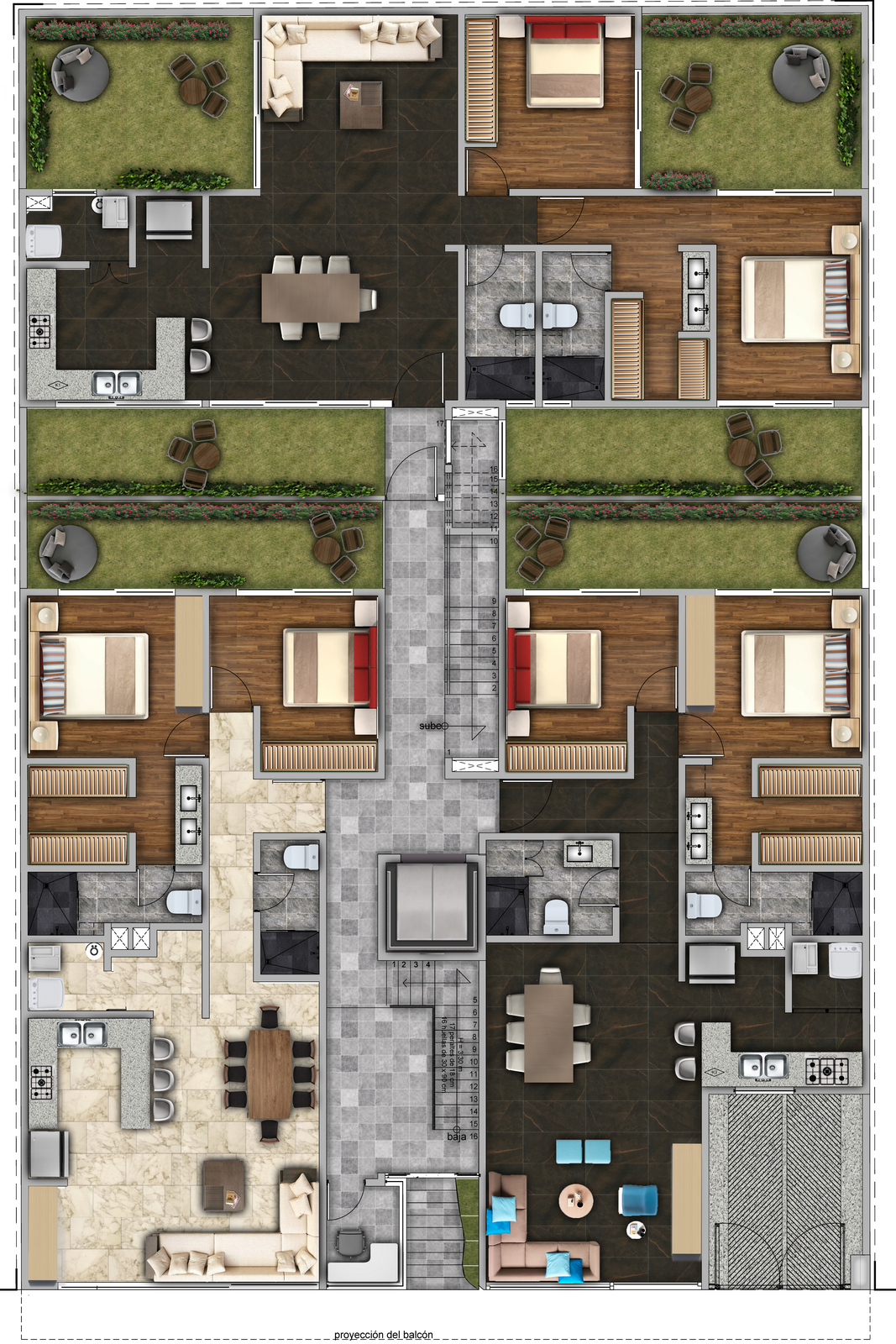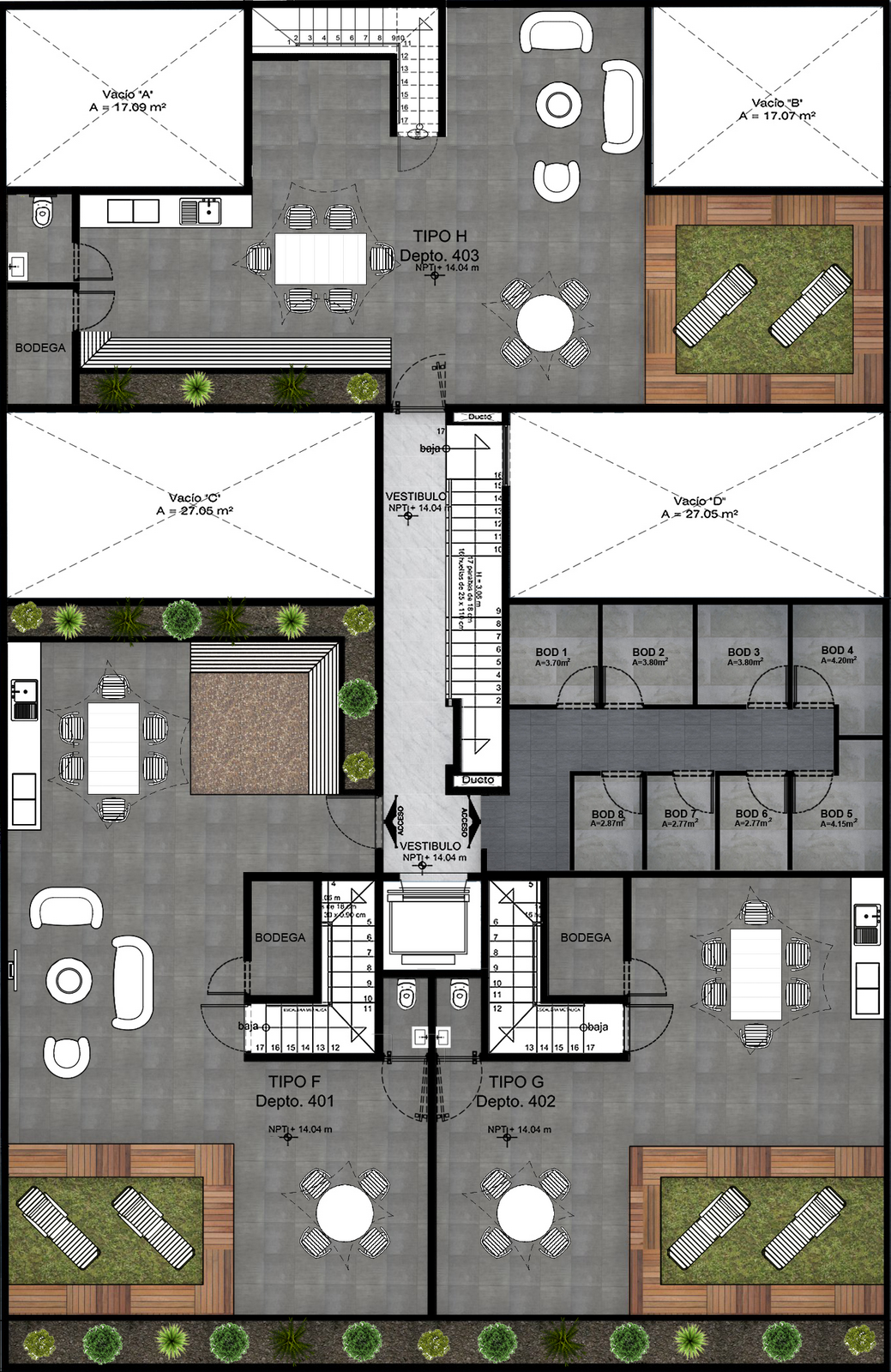Sumérgete en un recorrido visual de nuestros planos arquitectónicos, diseñados para ofrecer una comprensión detallada de cada departamento. Observa cómo cada espacio ha sido cuidadosamente planeado para maximizar confort y funcionalidad.